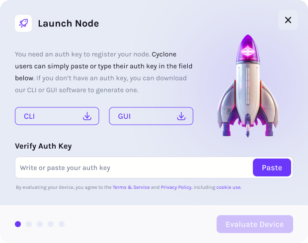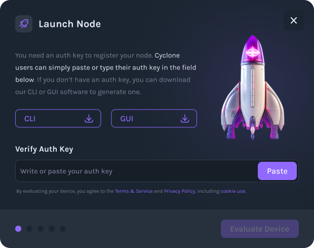 Follow the on-screen prompts to input your auth key and evaluate your device